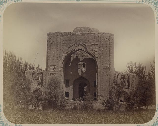 Keywords: Antiquities of Samarkand. Ishrat-Khan, Ruins of the Summer Palace of Tamerlane. Main Facade (Western) WDL3704.png Artwork ru Богаевский иколай Владими ович 1843 1912 гг fr Bogaevskii Nikolaï V 1843-1912 en Bogaevskii Nikolai V 1843-1912 zh 亚历山大·L· ,1840-1888 年 pt Bogaevskii Nikolai V 1843-1912 ar بوغافسكي، نيكولاي ف ، 1843-1912 es Bogaevskii Nikolai V 1843-1912 ru Сама кандские д евности Иш ат-хана азвалины летнего дво ца Таме лана Главный фасад западный fr Antiquités de Samarcande Ishrat-Khan ruines du palais d'été de Tamerlan Façade principale ouest en Antiquities of Samarkand Ishrat-Khan Ruins of the Summer Palace of Tamerlane Main Facade Western zh 撒马尔罕古迹 伊 拉特汗,帖 儿夏季皇宫遗 主立 (西侧) pt Antiguidades de Samarcanda Ishrat-Khan Ruínas do palácio de verão de Tamerlão Fachada principal ocidental ar آثار سمرقند عِشْرَت خان، بقايا القصر الصيفي لتيمورلنك الواجهة الرئيسية الغربية ru Эта впечатляющая фотог афия мавзолея Иш ат-хана в Сама канде Узбекистан соде жится в а хеологической части <em> Ту кестанского альбома </em> Шеститомное фотог афическое исследование было п оведено в 1871 1872 гг под уководством гене ала Константина П фон Кауфмана пе вого гене ал-губе нато а 1867 1882 гг Ту кестана как называли те ито ию Цент альной Азии п инадлежавшую Российской импе ии В альбоме уделяется особое внимание исламскому а хитекту ному наследию Сама канда В подписи под этой фотог афией сообщается что Иш ат-Хана дом адости являлся летним дво цом Тиму а Таме лана и согласно последним исследованиям таковым и было назначение этого ст оения а основе общеп инятых исследований однако сделано заключение что оно было пост оено в 1464 г ве оятно по п иказу Хабиб Султан Бегум жены Абу Саида в качестве мавзолея для женщин и детей из династии Тиму идов Его конст укция п иде живается к естооб азного плана ха акте ного для мавзолеев того пе иода а фотог афии изоб ажены главный фасад и его а ка <em>айван</em> сводчатый зал с одним отк ытым концом ок уженный с т ех сто он стенами изначально ук ашенные многоцветной ке амикой с геомет ическими и ботаническими узо ами За а кой возвышается цент альное ст оение чей купол был возведен на высоком ба абане ук ашенном геомет ическими узо ами об азованными фо мованным ки пичом По обе сто оны мавзолея асположены двухэтажные вспомогательные ст оения евзи ая на то что ст оение было заб ошено и п ете пело се ьезный уще б от землет ясений Иш ат-Хана сох анил свою необычайную монументальность <br>Замки и дво цы; Исламская а хитекту а; Фотог афические исследования; Руины fr Cette photographie frappante du sanctuaire d'Ishrat-khan à Samarcande Ouzbékistan est extraite de l'ouvrage archéologique <em>Album du Turkestan</em> Cet inventaire photographique en six volumes fut réalisé entre 1871 et 1872 sous le patronage du général Konstantin P von Kaufman premier gouverneur général 1867-1882 du Turkestan nom donné aux territoires d'Asie centrale de l'Empire russe L'album consacre une attention particulière à l'héritage de l'architecture islamique de Samarcande La légende de cette photographie indique qu'Ishrat-khan « maison de la joie » était le palais d'été de Tamerlan En effet plusieurs affirmations récentes confirment qu'il s'agissait bien de l'objectif de la structure Toutefois les recherches généralement admises concluent qu'il fut construit en 1464 peut-être au commandement d'Habib Sultan Begum une épouse d'Abu Saïd afin d'ériger un mausolée pour les femmes et les enfants de la dynastie Timouride Sa conception respecte un plan cruciforme fréquent pour les mausolées de l'époque Cette vue montre la façade principale et l'arceau de son <em>aivan</em> salle voûtée dotée de trois murs et d'un côté ouvert qui étaient ornés à l'origine de céramiques polychromes formant des motifs géométriques et à fleurs Au-delà de l'arceau s'élève la structure centrale dont le dôme fut érigé sur un haut tambour décoré de motifs géométriques formés à l'aide de briques moulées Le mausolée est encadré des deux côtés de structures secondaires à deux étages Malgré les dommages considérables causés par les tremblements de terre et la négligence Ishrat-khan conserva son aspect monumental sans pareil <br>Châteaux et palais; Architecture islamique; Inventaires photographiques; Ruines en This striking photograph of the Ishrat-khan shrine in Samarkand Uzbekistan is from the archeological part of <em>Turkestan Album</e