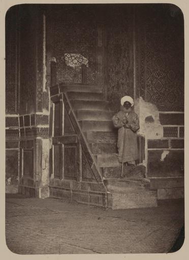 | Keywords: Antiquities of Samarkand. Madrasah of Tillia Kari. Inner Courtyard (Western Side). Elevation (Minbar) inside the Main Mosque WDL3846.png Artwork ru Богаевский иколай Владими ович 1843 1912 гг fr Bogaevskii Nikolaï V 1843-1912 en Bogaevskii Nikolai V 1843-1912 zh 亚历山大·L· ,1840-1888 年 pt Bogaevskii Nikolai V 1843-1912 ar بوغافسكي، نيكولاي ف ، 1843-1912 es Bogaevskii Nikolai V 1843-1912 ru Сама кандские д евности ед есе Тилля-Ка и Внут енний дво западная сто она Возвышение минба внут и главной мечети fr Antiquités de Samarcande Madrasa de Tillia Kari Cour intérieure côté ouest Élévation minbar à l'intérieur de la mosquée principale en Antiquities of Samarkand Madrasah of Tillia Kari Inner Courtyard Western Side Elevation Minbar inside the Main Mosque zh 撒马尔罕古迹 季里雅·卡利伊斯兰教学校 内部庭院(西侧) 主清 寺内的高台(敏 尔) pt Antiguidades de Samarcanda Madrassa de Tillia Kari Pátio interno lado ocidental Elevação minbar dentro da mesquita principal ar آثار سمرقند مدرسة تِلْيَا كَرِى الفناء الداخلي الجانب الغربي منبر داخل المسجد الرئيسي ru Эта фотог афия внут енней части мечети в мед есе Тилля-Ка и в Сама канде Узбекистан соде жится в а хеологической части <em> Ту кестанского альбома </em> Шеститомное фотог афическое исследование было подготовлено и издано в 1871 1872 гг под пат онажем гене ала Константина П фон Кауфмана пе вого гене ал-губе нато а 1867 1882 гг Ту кестана как называли в то в емя те ито ию Цент альной Азии п инадлежавшую Российской импе ии В альбоме уделяется особое внимание исламской а хитекту е Сама канда в том числе памятникам XIV и XV вв пе иода п авления Тиму а Таме лана и его п еемников В цент е Сама канда находится ансамбль Регистан объединяющий в себе т и основных об азца <em>madrasah</em> мед есе елигиозных школ Т етья часть Регистана мед есе Тилля-Ка и была пост оена в 1646 1660 гг на месте бывшего ка аван-са ая В цент е этого удивительного снимка находятся ступени ведущие на <em>минба </em> или кафед у а нижних стенах видны азнооб азные элементы из езного камня ве оятно м амо а с еди них панели и выступающий поясок Стены над пояском пок ыты искусными многоцветными ке амическими ук ашениями О наменты включают сложные геомет ические фигу ы из пе есекающихся линий а также омбовидные узо ы с ботаническими мотивами Пове хности окаймлены ве тикальными полосами из ке амической плитки Фигу а в белом тю бане п идает этому священному месту некое величие <br>Исламская а хитекту а; ед есе; Фотог афические исследования; По т етные фотог афии; По т еты fr Cette photographie de l'intérieur de la mosquée de la madrasa de Tillia Kari à Samarcande Ouzbékistan est extraite de l'ouvrage archéologique <em>Album du Turkestan</em> Cet inventaire photographique en six volumes fut réalisé entre 1871 et 1872 sous le patronage du général Konstantin P von Kaufman premier gouverneur général 1867-1882 du Turkestan nom donné aux territoires d'Asie centrale de l'Empire russe L'album consacre une attention particulière à l'architecture islamique de Samarcande avec notamment des monuments datant des XIV<sup>e</sup> et XV<sup>e</sup> siècles lors du règne de Tamerlan et de ses successeurs Situé au centre de Samarcande l'ensemble du Registan est composé de trois exemples majeurs de <em>madrasa</em> école religieuse Le troisième composant du Registan la madrasa de Tillia Kari fut construit entre 1646 et 1660 sur le site d'un ancien caravansérail Cette vue remarquable de l'intérieur de la mosquée présente les marches menant vers le <em>minbar</em> ou chaire Dans la partie inférieure les murs arborent des éléments de pierre sculptés probablement en marbre variés notamment des panneaux de lambris et une saillie Les murs au-dessus de la saillie sont recouverts d'ornements sophistiqués en céramique polychrome Les décorations incluent des figures géométriques complexes formées par des lignes d'intersection ainsi que des motifs de losanges et à fleurs Les surfaces sont bordées de bandes verticales de carreaux de céramique La présence de l'homme au turban blanc accentue la dignité solennelle de ce lieu sacré <br>Architecture islamique; Madrasas; Inventaires photographiques; Portraits photographiques; Portraits en This photograph of the interior of the mosque at the Tillia Kari Madrasah in Samarkand Uzbekistan is from the archeological part of <em>Turkestan Album</em> The six-volume photographic survey was produced in 1871-72 under the patronage of General Konstantin P von Kaufman the first governor-general 1867-82 of Turkestan as the Russian Empire s Central Asian territories were called T