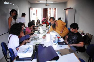 Keywords: nesta oficina em Juazeiro do Norte na URCA foram feitos fotogramas com exposição de 30 minutos a duas horas no sol. à esquerda, de pé a prof. Ruth Moreira Souza Regiani, e à direita o monitor, Luan, cujo TCC tratou de antotipia, texto no site |