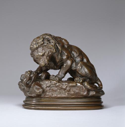Keywords: Antoine-Louis Barye - Lion and Serpent (No 2) - Walters 2792 - Profile.jpg Although listed as No 2 this version of the sculpture was actually Barye's third variant It is distinguished by the larger and more threatening snake and by the tufted rather than flowing mane This particular piece is a foundry model that was sand cast in four sections It was then assembled using interlocking pins ridges and slots The founder's mark VP surmounted by a crown is that of Victor Paillard issued ca 1858 golden bronze with a brown-black patina sand-cast with keying elements cm 18 4 20 9 8 accession number 27 92 38132 William T Walters Baltimore date and mode of acquisition unknown Henry Walters city Baltimore Walters Art Museum Henry Walters Acquired by William T Walters Signature Cast through from model BARYE; Founder's Mark Stamped VP for Victor Paillard surmounted by crown ; Artisan's Mark Incised S; Number Painted in white on base W 60 The Works of Antoine-Louis Barye American Art Gallery New York New York 1889-1890 The Allure of Bronze The Walters Art Gallery Baltimore 1995 Untamed The Art of Antoine-Louis Barye The Walters Art Museum Baltimore; Philbrook Museum of Art Tulsa; The Henry Morrison Flagler Museum Palm Beach 2007-2008 place of origin Paris France Walters Art Museum license Sculptures by Antoine-Louis Barye Media contributed by the Walters Art Museum needs category review Sculptures in the Walters Art Museum |