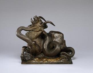 Keywords: Antoine-Louis Barye - "Surtout de table" - Python Killing a Gnu - Walters 27152 - Profile.jpg Barye was fascinated by large snakes and portrayed them in sculptures and paintings Two Javanese pythons were sent to the Jardin des Plantes in 1838 In this sculpture a python has entwined itself around the body of a gnu an African antelope also known as a wildebeest This sculpture is one of four animal combats that originally stood at the base of the triumphal arch supporting the Tiger Hunt Two of the other combats Eagle Attacking a Wounded Ibex and Lion Attacking a Boar are now in the Louvre Museum; the fourth Tiger Devouring a Large Antelope belongs to the Detroit Institute of Arts between 1834 1839 bronze with warm brown patina over areas of metallic flake or powdered surface with traces of gilding cm 21 6 29 2 24 1 accession number 27 152 34005 Duc d'Orléans 1834 by commission duchesse d'Orléans Sale Paris January 18-20 1853 no 2 Alphonse de Hautpoul Maurice Mallet Henry Walters Baltimore November 19 1906 by purchase George A Lucas as agent Walters Art Museum Henry Walters Acquired by Henry Walters 1906 Signature Cast through from model BARYE The Romantics to Rodin French Nineteenth Century Sculpture from North American Collections Los Angeles County Museum of Art Los Angeles; Minneapolis Institute of Arts Minneapolis; The Detroit Institute of Arts Detroit; Indianapolis Museum of Art Indianapolis 1980-1981 Un âge d'or des arts décoratifs 1814-1848 Galeries nationales du Grand Palais Paris 1991 Untamed The Art of Antoine-Louis Barye The Walters Art Museum Baltimore; Philbrook Museum of Art Tulsa; The Henry Morrison Flagler Museum Palm Beach 2007-2008 place of origin Paris France Walters Art Museum license Sculptures by Antoine-Louis Barye Media contributed by the Walters Art Museum needs category review Sculptures in the Walters Art Museum Gnus in art Pythons in art |