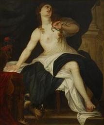 | Keywords: Antolinez-cleopatra.jpg Artwork es Muerte de Cleopatra Alcalá Subastas mayo de 2007 procedente de la colección Comyn de Barcelona c 1663 Oil on canvas cm 137 5 115 5 unknown http //www alcalasubastas es/Detalle aspx RecordId 916515 other versions PD-old-100 Paintings by José Antolínez m 17th-century paintings location missing Paintings of the death of Cleopatra 17th-century oil paintings of sitting women at full length 17th-century paintings of dogs Paintings of topless sitting women | ||||