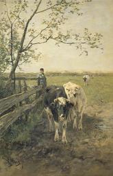 Keywords: Anton Mauve - De melkbocht.jpg Artwork creator Anton Mauve The milking corner De melkbocht Alternate title Melkbocht http //www rkd nl/rkddb RKD images Kunstwerknummer 26682 ± 1870-1888 1853-1888 Oil on canvas cm 171 115 Rijksmuseum Amsterdam Amsterdam Signed bottom left / Gesigneerd linksonder A Mauve Provenance / Herkomst April 1900 ceded to the Rijksmuseum Amsterdam Amsterdam by the widow R Baron van Lynden née M C Barones van Pallandt The Hague https //www rijksmuseum nl/collectie/SK-A-1888 www rijksmuseum nl Inv no SK-A-1888 Other versions PD-old-100 Paintings by Anton Mauve in the Rijksmuseum Amsterdam Paintings of cattle Anton Mauve |
