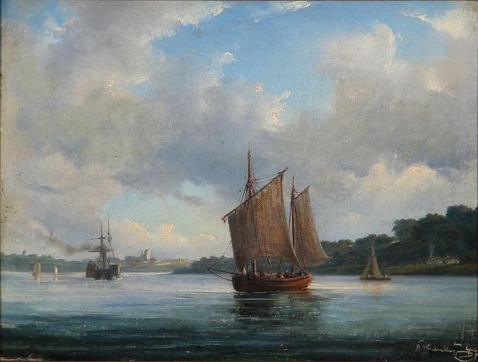 Keywords: Anton Melbye - Fjord scene med fiskerbåde og en hjuldamper (1849).jpg Artwork Creator Anton Melbye 1849 oil canvas cm 25 33 object history credit line ~ lower right signature accession number 1252 http //www arcadja com/auctions/de/private/melbye_anton/kunstwerken/19403/0/ Bruun Rasmussen Copenhagen 10 09 2012 lot 99 via ARCADJA auction results PD-old-100-1923 Anton Melbye painter Paintings of Norwegian fjords 19th-century sailing ships in paintings 1849 paintings |