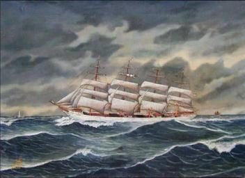 | Keywords: Anton Rieck - Vier-Mast-Vollschiff FRIEDA in stark bewegter See.jpg de Vier-Mast-Vollschiff FRIEDA in stark bewegter See 1912 oil canvas cm object history de Das gut erhaltene Bild wurde im Juni 2005 auf dem Fischland bei einem Antiquitäten- händler entdeckt und soll lt Angaben aus Leipzig stammen <ref>http //www danziger-seeschiff de/Archiv/SEESCHIFF_08 pdf - DANZIGER SEESCHIFF Nr 8 Hamburg 2006 KAPITÄNE REEDER SCHIFFE</ref> credit line accession number http //www danziger-seeschiff de/Archiv/SEESCHIFF_08 pdf DANZIGER SEESCHIFF Nr 8 Hamburg 2006 KAPITÄNE REEDER SCHIFFE reflist PD-old-auto-1923 1942 19th-century sailing ships in paintings Frieda ship 1885 Square-riggers under sail |