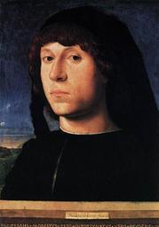 Keywords: Antonello da Messina - Portrait of a Man - WGA0751.jpg Artwork Creator Antonello Da Messina 1478 Oil walnut panel size cm 21 15 Institution Gemäldegalerie Berlin object history credit line accession number WGA link 751 http //www wga hu/art/a/antonell/man_port jpg http //www wga hu/html/a/antonell/man_port html <gallery> Antonello da Messina 056 jpg Antonello da Messina - Portrait of a Young Man - Google Art Project jpg</gallery> PD-old-100 painting portrait Italian 1451-1500 WGA form painting WGA type portrait WGA School Italian WGA time period 1451-1500 Paintings by Antonello da Messina in the Gemäldegalerie Berlin 15th-century portrait paintings in the Gemäldegalerie Berlin 1478 Portraits of anonymous men of the Italian Renaissance 1470s paintings in Germany 1470s portrait paintings from Italy Male 1478 portrait paintings Male 15th-century oil on panel paintings in Germany 15th-century oil portraits of men at bust length 1478 Black clothing in art male 1478 Paintings by Antonello da Messina with fur Portraits of men with landscape Three-quarter view portrait paintings of men facing left |