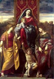 Keywords: Antonio Carracci, Madonna in trono e santi, Berlino.jpg Artwork Creator Antonio Carracci title Madonna and Child Enthroned with Saints John the Baptistas a boy Mary Magdalene Martha Madonna con Bambino in trono san Giovannino santa Maria Maddalena e santa Marta <br> alternate title ca 1613 1615 Oil on canvas Size cm 185 264 Institution Gemäldegalerie Berlin http //www bpk-images de bpk-images de search 00040241<br>http //www spk-digital de/showDetail html id 22/bam/museum/smb/kfmv/00040241 22 Stiftung Preußischer Kulturbesitz object history exhibition history credit line Kaiser Friedrich-Museums-Verein place of creation accession number KFMV 233 http //www fondazionezeri unibo it/catalogo/scheda jsp decorator layout_S2 apply true tipo_scheda OA id 58059 titolo Carracci+Antonio+ 3b+Carracci+Annibale 0A 09 09 09 0A 09 09+++++ 2c+Madonna+con+Bambino+in+trono 2c+san+Giovannino 2c+santa+Maria+Maddalena+e+santa+Marta Fondazione Zeri accession number PD-old-auto-1923 1618 DEFAULTSORT Carracci Madonna and Child Enthroned with Saints Gemäldegalerie Berlin Antonio Carracci 1610s paintings in the Gemäldegalerie Berlin Italian Baroque paintings in the Gemäldegalerie Berlin Martha and Mary Paintings of people with landscape backgrounds 17th-century paintings of Madonna and Child with the Infant Saint John 17th-century paintings of Mary Magdalene |