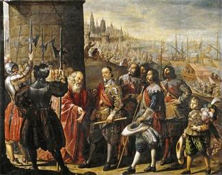Keywords: Antonio de Pereda y Salgado 001.jpg Artwork Q27700857 Creator Antonio de Pereda y Salgado La obra representa al dux de la república de Génova saliendo a las puertas de dicha ciudad a recibir a Álvaro de Bazán 1571-1646 segundo marqués de Santa Cruz y llegado de España con una flota destinada a proteger el lugar del asedio al que estaba siendo sometido por las tropas francesas en el contexto de la Guerra de los Treinta Años oil on canvas Size cm 370 290 Institution Museo del Prado Sala 009A de Historienmalerei https //www museodelprado es/coleccion/obra-de-arte/el-socorro-de-genova-por-el-ii-marques-de-santa/d413f99b-41c6-4659-bf17-c7d2c7451e6a Ca 1634-1635 http //mail wikipedia org/pipermail/wikide-l/2005-April/012195 html PD-old-100 PD-Art-YorckProject https //www museodelprado es/coleccion/obra-de-arte/el-socorro-de-genova-por-el-ii-marques-de-santa/d413f99b-41c6-4659-bf17-c7d2c7451e6a accession number P07126 Other versions El socorro de Génova por el marqués de Santa Cruz Museo del Prado |