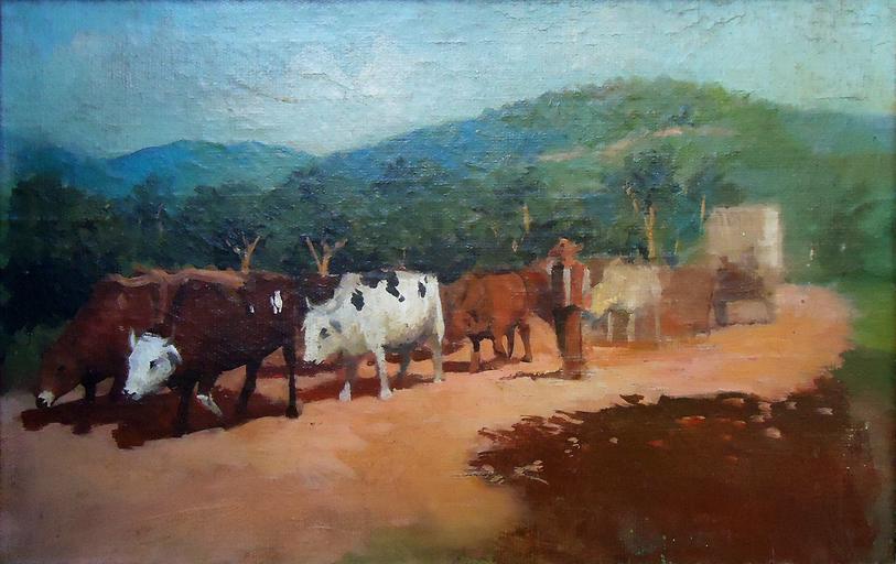| Keywords: Antonio Ferrigno, carro de boi na estrada, óleo sobre tela, 1895-1905, 18,1 x 28,2 cm, Photo Gedley Belchior Braga.jpg en Antonio Ferrigno 1863-1940 Bullock cart on the road oil on canvas c 1895-1905 18 1 x 28 2 cm Private Collection Photo Gedley Belchior Braga Probably this is one of the studies for the bullock cart that is present in the work O Café para a Estação 1903 from Museu Paulista Collection São Paulo SP 2013-07-25 Projeto del Rei Collection Antonio Ferrigno Photo Gedley Belchior Braga PD-old-auto-1923 1940 Uploaded with UploadWizard Projeto del Rei Antonio Ferrigno History of São Paulo Ox-drawn carts in Brazil Ox-drawn carts in art |