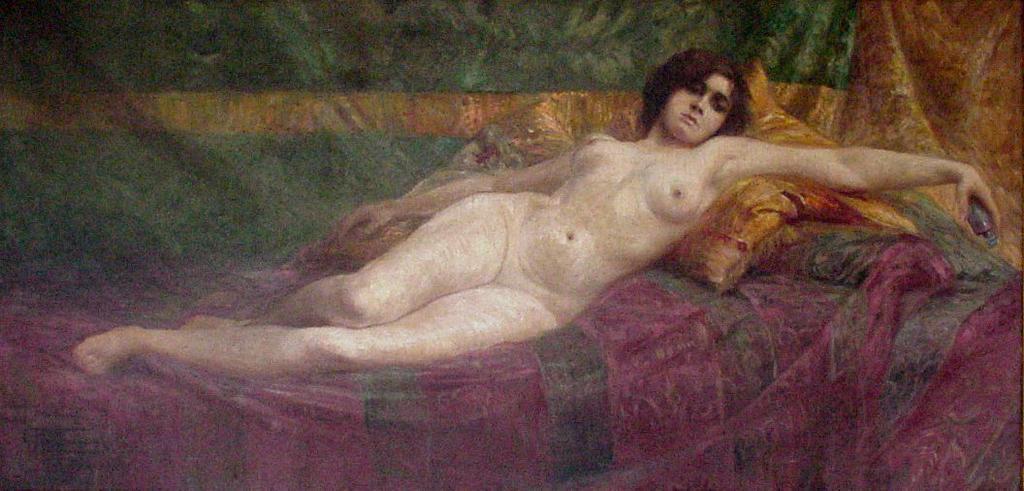 | Keywords: Antonio Parreiras - Dolorida - 1909.jpg Artwork Creator Antônio Parreiras Sorrowful 1911 Oil on canvas cm 108 223 5 Institution Museu Antônio Parreiras accession number object history credit line http //www funarj rj gov br/museus/map_06 html PD-old-auto 1937 Paintings of nude females by Antônio Parreiras Paintings by Antônio Parreiras in the Museu Antônio Parreiras Academic paintings in Brazil Paintings of nude recumbent females supine Parreiras 1910s paintings by Antônio Parreiras | ||||