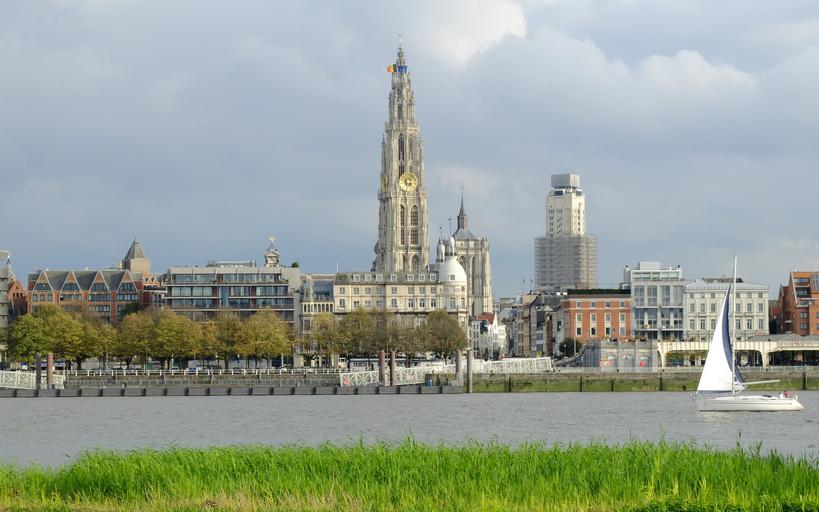 Keywords: antwerp conducted by tower farmers tower schelde left bank river sailing boat panorama belgium cityscape landscape flow air blue sky view sail vessel boating tourism waterway city view