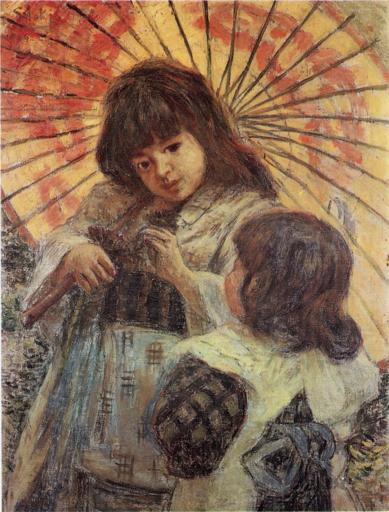 Keywords: AokiShigeru-1909-Two Girls.png Artwork ja 二人の少女 en Two Girls Creator Aoki Shigeru 1909 oil on canvas cm 60 5 45 5 ja 笠間日動美術館 en Kasama Nichidō Museum of Art 永伍 繁 の愛と放浪 日 放 出版協会 1979年 PD-Japan ja 1909年に恩師の森三美を頼って佐 を訪れた際 お らく 厄介になった礼として が森に贈った油彩画 Other versions <gallery>File AokiShigeru-1909-Two Girls-2 png Higher resolution PNG file</gallery> Shigeru Aoki |