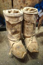 Keywords: Apache boots, early 20th century - Bata Shoe Museum - DSC00494.JPG en Exhibit in the Bata Shoe Museum Toronto Ontario Canada This item is old enough so that its design is in the public domain The museum permitted photography without restriction 2013-07-04 11 16 13 own Daderot cc-zero Moccasins in the Bata Shoe Museum Uploaded with UploadWizard Apaches |