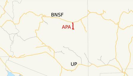 Keywords: Apache Railway system map.svg This is a map of the Apache Railway as of 2009 with other railroads in gray Class I railroads in orange Email me if you would like a copy of the GIS data I created modified from Bureau of Transportation Statistics North American Transportation Atlas Data or if you see any errors 2009-03-27 own assumed NE2 System maps of U S railroads Apache Railway |