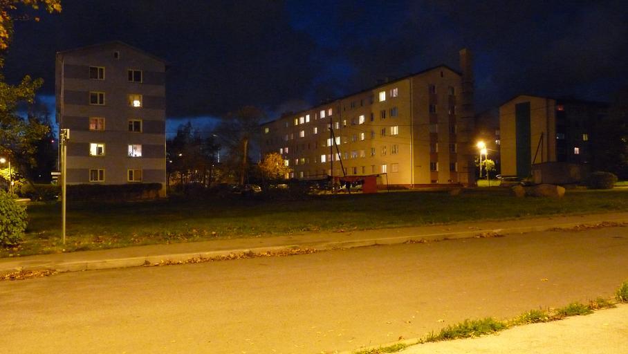 Keywords: Apartment houses in Vasara street during autumn evening.JPG en Kopli quarter in Tallinn Estonia own Dmitry G 2011-10-05 Kopli Vasara tänav Autumn evening in Tallinn