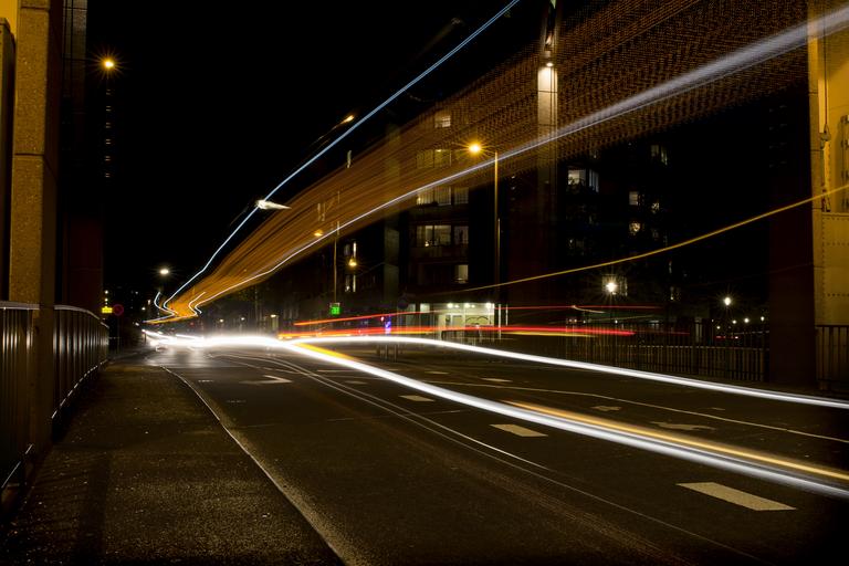 Keywords: apeldoorn bridge evening night photography light rays car bus city channel