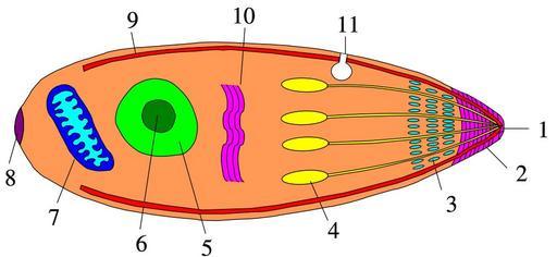 Keywords: Apicomplexa structure.svg Apicomplexan structure 1-polar ring 2-conoid 3-micronemes 4-rhoptries 5-nucleus 6-nucleolus 7-mitochondria 8-posterior ring 9-suppedicular microtubules 10-golgi apparatus 11-micropore Ст укту а спо овика 1-поля ное кольцо 2-коноид 3-мик онемы 4- опт ии 5-клеточное яд о 6-яд ышко 7-митохонд ия 8-заднее кольцо 9-альвеолы 10-аппа ат Гольджи 11-мик опо а self-made with http //www xfig org xfig in Linux 2007-08-31 Franciscosp2 Apicomplexa Diagrams labelled with numbers only Cell nucleolus |