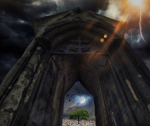 | Keywords: apocalypse mystical moon sun clouds thunderstorm birds building old atmospheric awesome dark nightmare wasteland tree spooky sky mood flash armageddon horizon forward nature destruction end of the world log force of nature branches earth light sunbeam leaves green |