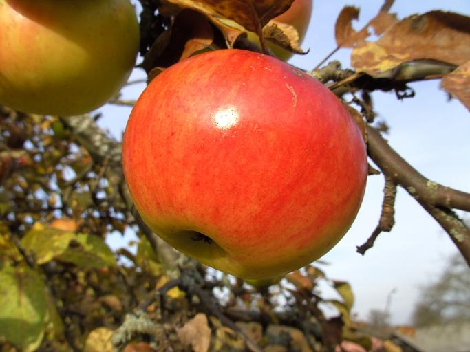 Keywords: apple apple tree autumn harvest fruit red branch leaves road