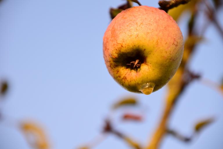 Keywords: apple apple tree tree fruit nature red close food kernobstgewaechs branch autumn morgentau dew moist sunrise