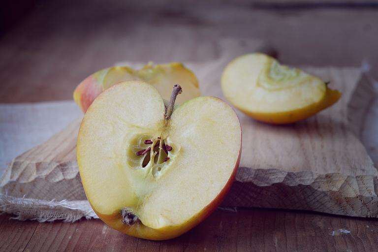 Keywords: apple bio apple cut cut in half halved apples cutting board wooden board food healthy fruit bio harvest delicious frisch ripe close country life eat