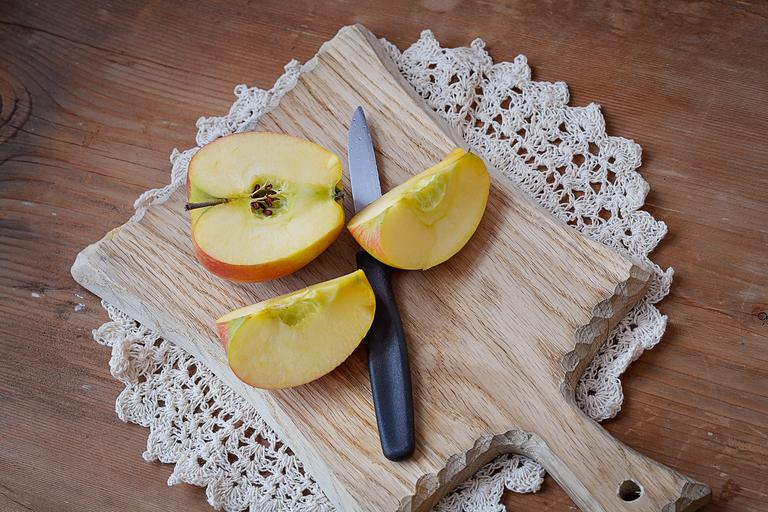 Keywords: apple bio apple cut sliced apple cutting board wooden board knife bio fruit healthy harvest vitamins food frisch delicious eat nutrition natural product country life close