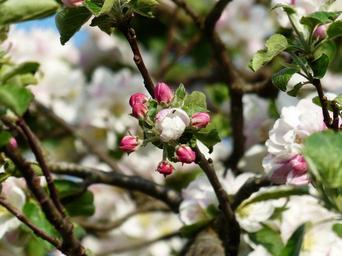 Keywords: apple blossom apple tree blossom bloom white pink road leaves malus kernobstgewaechs large rose greenhouse rosaceae branch apple tree flowers