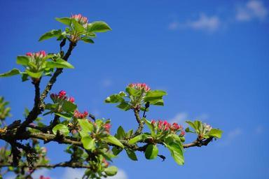 Keywords: apple tree apple blossoms flowers red go up bloom spring bud tree road second malus kernobstgewaechs large rose greenhouse rosaceae