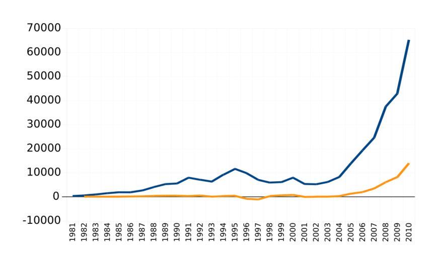 | Keywords: Apple umsatz.svg en Revenue blue and earnings orange of Apple 2011-08-26 own Accountalive Based on following data from w de Apple Source unknown Jahr Umsatz/revenue Mio USD Gewinn/earnings Mio USD 1981 335 unbek 1982 583 61 1983 983 77 1984 1516 64 1985 1918 61 1986 1902 154 1987 2661 218 1988 4071 400 1989 5284 454 1990 5558 475 1991 7977 310 1992 7087 530 1993 6309 87 1994 9189 310 1995 11602 424 1996 9833 -816 1997 7081 -1045 1998 5941 309 1999 6134 601 2000 7983 786 2001 5363 -25 2002 5247 65 2003 6207 57 2004 8279 266 2005 13931 1328 2006 19315 1989 2007 24578 3495 2008 37491 6119 2009 42905 8235 2010 65225 14013 cc-zero Uploaded with UploadWizard Apple Inc |