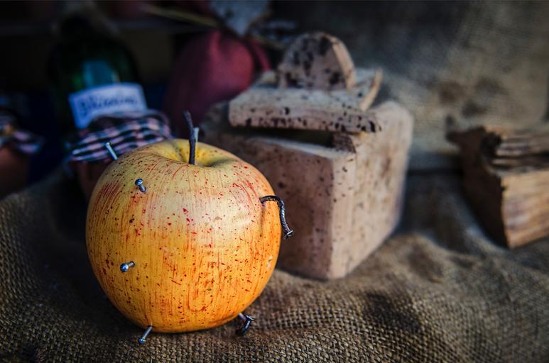 Keywords: apples fruit red food fruit season yellow nail iron wood old oxide