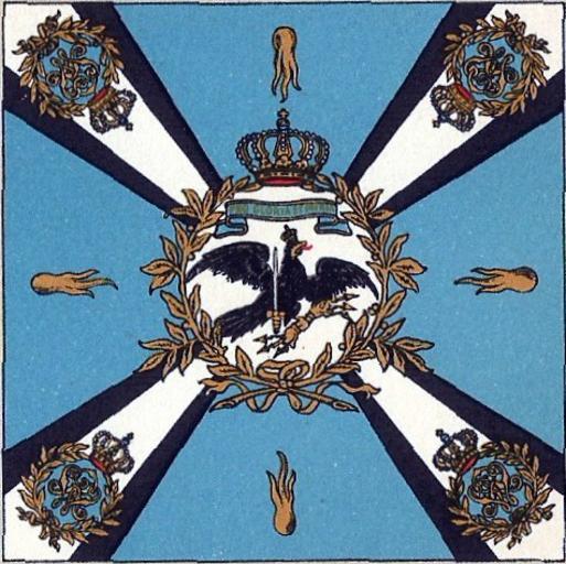 Keywords: AprA – blau AK.jpg en Flag of the Line Infantry regiments wearing blue epaulettes except the bataillons of the jäger de Fahne der Linien-Infanterie-Regimenter der blauen Achselklappen ab 1891 mit Ausnahme der Jäger-Bataillone leichte Infanterie <1919 Martin Lezius Fahnen und Standarten der alten preußischen Armee ; Stuttgart 1935 Franckh ™sche Verlagsbuchhandlung author Author wrote the Story but he used and didn't breate the fotos or pictures before Custom license marker 2014 04 04 Anonymous-EU Uploaded with UploadWizard Military colors of Prussia |