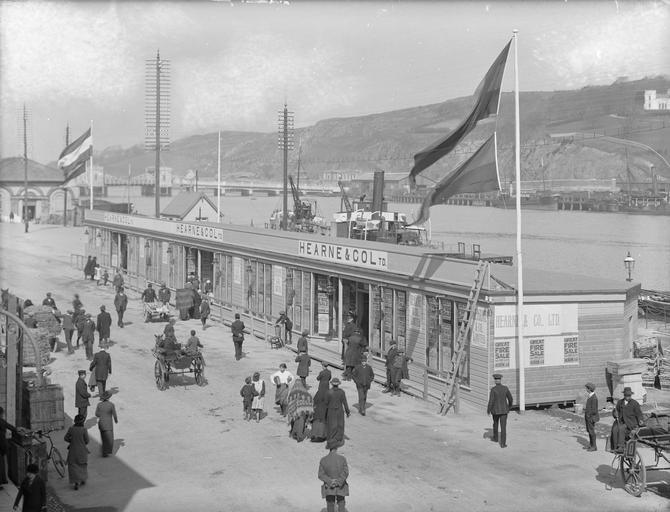 Keywords: hearne's hearnes hearne & co. ltd. hearnecoltd ireland munster the quay thequay great fire salvage sale greatfiresalvagesale fire friday 23rd april 1915 1910s a.h. poole ahpoole arthur henri poole arthurhenripoole poole collection poolecollection glass negative glassnegative shops portlairge steam dredger steamdredger redmond bridge redmondbridge mudboat flemings castle flemingscastle suir dublin dockyard co. dublindockyardco butter market buttermarket side car sidecar knockane villa knockanevilla soldier barefoot children barefootchildren children waterford national library of ireland nationallibraryofireland blackandwhite monochrome snow outdoor black and white In a fine example of "You can't keep a good company down", here is Hearne's temporary new shop on the quayside in Waterford, in business exactly 3 weeks after a devastating fire on Friday, 2 April. The Great Fire Salvage Sale was for 4 days only, and began on the day this photo was taken. The boat behind Hearne's shop has been identified by ofarrl as the Portlairge, a steam dredger known around Waterford as the Mudboat: "Built in 1907 by the Dublin Dockyard Co. she was the last working steamship in Ireland when she was retired in 1980." Meanwhile Niall McAuley found the Portlairge at its new home in Saltmills, Co. Wexford. Date: Friday, 23 April 1915 NLI Ref.: P_WP_2607 In a fine example of "You can't keep a good company down", here is Hearne's temporary new shop on the quayside in Waterford, in business exactly 3 weeks after a devastating fire on Friday, 2 April. The Great Fire Salvage Sale was for 4 days only, and began on the day this photo was taken. The boat behind Hearne's shop has been identified by ofarrl as the Portlairge, a steam dredger known around Waterford as the Mudboat: "Built in 1907 by the Dublin Dockyard Co. she was the last working steamship in Ireland when she was retired in 1980." Meanwhile Niall McAuley found the Portlairge at its new home in Saltmills, Co. Wexford. Date: Friday, 23 April 1915 NLI Ref.: P_WP_2607