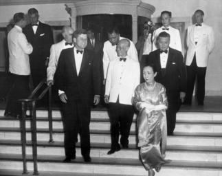 | Keywords: AR6721-D. Dinner in Honor of President John F. Kennedy Given by Chen Cheng, Vice President of the Republic of China.jpg President John F Kennedy attends a dinner in his honor given by Vice President of China Chen Cheng at the Mayflower Hotel Washington D C L-R Front row President Kennedy; Vice President Chen; and Vice President Chen ™s wife Tan Xiang Those behind the President include China's Ambassador to the United States George Kung-chao Yeh second row far right and Secret Service agents Gerald Jerry Behn and Milt Wilhite http //www jfklibrary org/Asset-Viewer/Archives/JFKWHP-AR6721-D aspx 1961-08-02 Creator Abbie Rowe PD-USGov John F Kennedy in 1961 Chen Cheng Tan Xiang George Yeh Renaissance Mayflower Hotel Photographs by Abbie Rowe John F Kennedy Presidential Library and Museum Black tie |