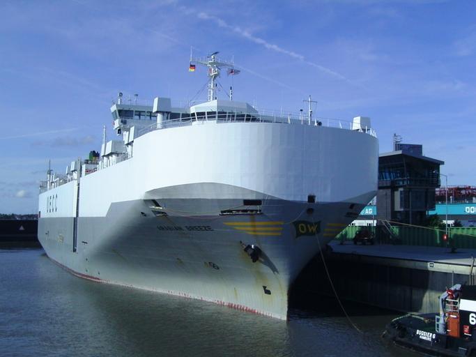 | Keywords: Arabian Breeze 2011-06-14.jpg en The car carrier Arabian Breeze in the Kaiserschleuse ship lock in Bremerhaven Kaiserschleuse in Bremerhaven gefahren own Tvabutzku1234 2011-06-14 53 33 20 55 N 8 33 31 91 E region DE_heading N Cc-zero Kaiserschleuse Bremerhaven Car carriers in Bremerhaven Arabian Breeze ship 1983 Bugsier 6 tugboat 2008 |