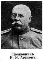 | Keywords: Arapov N I.jpg ru Русскій полковникъ И А аповъ date Жу нал ива 1915 год author PD-Old Uploaded with UploadWizard Black and white portrait photographs of men at bust length Black and white portrait photographs of military people in uniform Black and white photographs Nikolay Arapov |