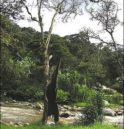 Keywords: Arbol.jpg es Arbol quemado pero aún vivo al pie del rio Gualivá en A Tree which has burnt but is still alive by the river Gualivá Imagen propia de un lote de un productor de Agricultura Sensitiva Ing Luis Ardila 2005-07-29 Propio Trees damaged by fire |