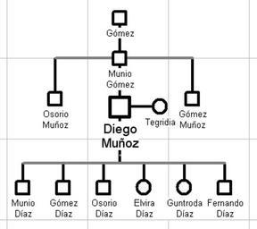 Keywords: Árbol genealógico de Diego Muñoz.jpg Origenes familiares y descendencia del conde Diego Muñoz de Saldaña Referencias Martínez Díez Gonzalo 1995 «La familia condal de Carrión» Actas del III Congreso de Historia de Palencia vol 2 Montenegro Valentin Julia 1985 «En torno a los orígenes familiares de Diego Muñoz el Primer Conde de Saldaña» Actas del I Congreso de Historia de Palencia vol 2 Torre Sevilla-Quiñones de León Margarita Cecilia 1985 Linajes nobiliarios de León y Castilla Siglos IX-XIII own Truor Family trees of Spain Banu Gómez |