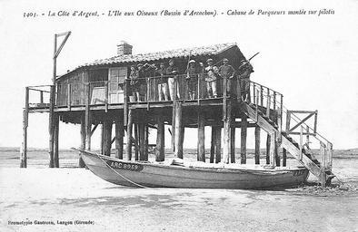 Keywords: Arcachon cabane sur pilotis.jpg en Oyster farmer's hut built on piles at La Côte d'Argent Ile aux Oiseaux Bassin d'Arcachon A wooden building with a roof of half-round tiles fr Cabane de parqueurs d'huitres montée sur pilotis à la Côte d'Argent sur l'Ile aux Oiseaux Bassin d'Arcachon Bâtiment en bois sous un toit de tuiles canal Own Auteur inconnu / Unknown author Début XXe siècle / Early XXth century Aucune / None PD-old Cabane tchanquée Pilotis Postcards of Gironde |