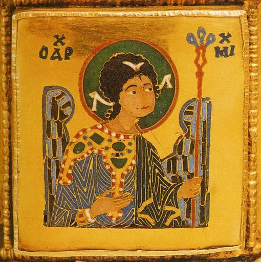 | Keywords: Archangel Michael on the Holy Crown of Hungary.jpg author XIth century object history credit line accession number own scanned by Szilas from A magyar Szent Korona by Tóth Endre Szelényi Károly Kossuth 2000 Budapest PD-old-100 Holy Crown of Hungary Icons of Michael from Deesis |