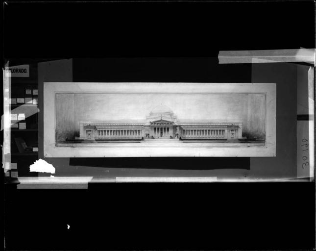 | Keywords: field columbian museum chicago blackandwhite monochrome indoor black and white Architectural drawing of proposed Field Museum of Natural History building. Note: there is a dome, similar to the Field Columbian Museum's building. Shown in a studio setting. 1910. Original size and material: 8x10 inch glass negative Digital Identifier: CSGN30190 Part of the Illinois Urban Landscapes Project: www.fieldmuseum.org/urbanlandscapes/ Architectural drawing of proposed Field Museum of Natural History building. Note: there is a dome, similar to the Field Columbian Museum's building. Shown in a studio setting. 1910. Original size and material: 8x10 inch glass negative Digital Identifier: CSGN30190 Part of the Illinois Urban Landscapes Project: www.fieldmuseum.org/urbanlandscapes/ |