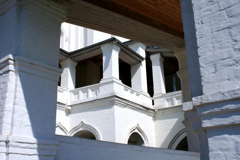 Keywords: architecture building church religion russian orthodox white arches pillars staircase geometrical play historic