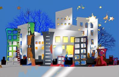 Keywords: architecture city home homes window collage scene construction build building house construction abstract urban tower enlightened light source art artwork live design pattern plan road modern sketch drawing stadtmitte construction element element district cityscape