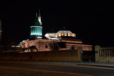 Keywords: architecture mevlevi konya mevlana museum islam religion landmark night darkness lights turkey
