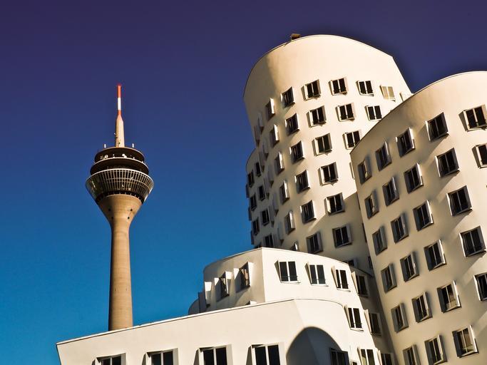 Keywords: architecture modern building facade abstract gehry düsseldorf tv tower media harbour