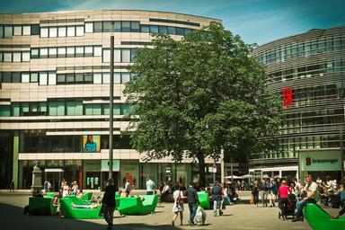 Keywords: architecture modern building facade glass abstract kö bow düsseldorf work shopping recovery break rest urban city city