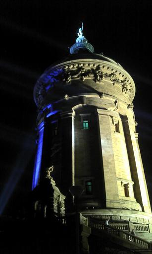 Keywords: architecture water tower water tower at night mannheim urban art nouveau facades