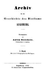 Keywords: Archiv für die Geschichte des Bisthums Augsburg 1856 Titel.png Titelseite der Zeitschrift / Title page of the periodical Eigenscan 1856 Diverse PD-old PD-US Magazines in German Magazine covers of Germany