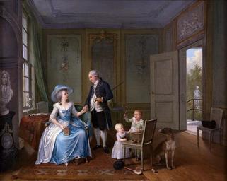 Keywords: Arent Anthoni Roukens and family, by Willem Joseph Laquy (1738-1798).jpg Arent Anthoni Roukens and family in their country house in Hees 1786 Oil on canvas cm 75 5 94 5 Institution Museum Het Valkhof W J Laquy / pinxt 1786 signature/date c r http //www collectiegelderland nl/musea/museumhetvalkhof/voorwerp-1977 01 23 Museum Valkhof other versions PD-old-100 ImageNote 1 1154 902 314 351 3067 2445 2 Burgemeester Arent Anthoni Roukens ImageNoteEnd 1 ImageNote 2 677 1106 383 486 3067 2445 2 Adriana Johanna Jongbloet vrouw van Arent ImageNoteEnd 2 ImageNote 3 1758 1457 265 229 3067 2445 2 Johan Michiel Roukens zoon ImageNoteEnd 3 ImageNote 4 1513 1629 232 241 3067 2445 2 Agneta Jeanetta Roukens dochter ImageNoteEnd 4 ImageNote 5 4 906 208 351 3067 2445 2 Burgemeester Willem Roukens Arents voorvader ImageNoteEnd 5 ImageNote 6 1619 1384 196 204 3067 2445 2 Vinkentouw ImageNoteEnd 6 ImageNote 7 1717 2216 432 188 3067 2445 2 Pluimbalspel ImageNoteEnd 7 DEFAULTSORT 1786; Roukens family Willem Joseph Laquy Paintings in Museum Het Valkhof 1786 oil on canvas paintings Portrait 1786 portrait paintings M 18th-century family portraits 18th-century oil portraits at full length 18th-century people of the Netherlands 18th-century portrait paintings in interiors 18th-century portrait paintings in the Netherlands 18th-century portrait paintings with dogs Armchairs in portrait paintings Busts in portrait paintings Chairs in portrait paintings Habit à la française in portrait paintings Portrait paintings with footstools Portrait paintings of women wearing hats Portraits of parents and children Uploaded with UploadWizard |