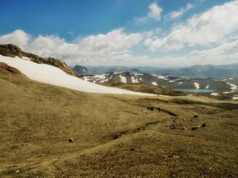 Keywords: argentina volcano landscape scenic snow mountains hikers sky clouds nature outside