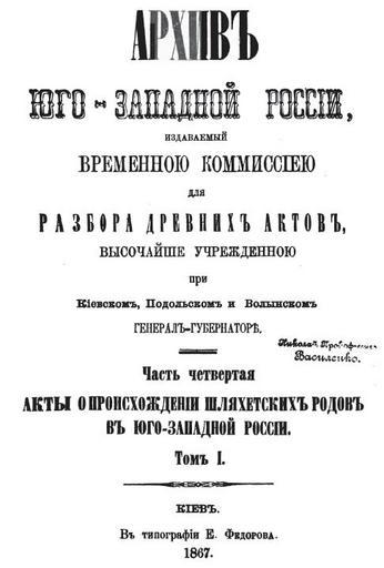 | Keywords: Arhiv Ugo-Zapadnoy Rossiy.JPG ru Титульная ст аница книги А хив Юго-Западной России Часть 4 Том 1 Акты о п оисхождении шляхетских одов в Юго-Зап России Киев 1867 г А хив Юго-Западной России Часть 4 Том 1 Акты о п оисхождении шляхетских одов в Юго-Зап России Киев 1867 г Участник Ivan Levkovskiy 1867 г Nobility of Poland Royal families |